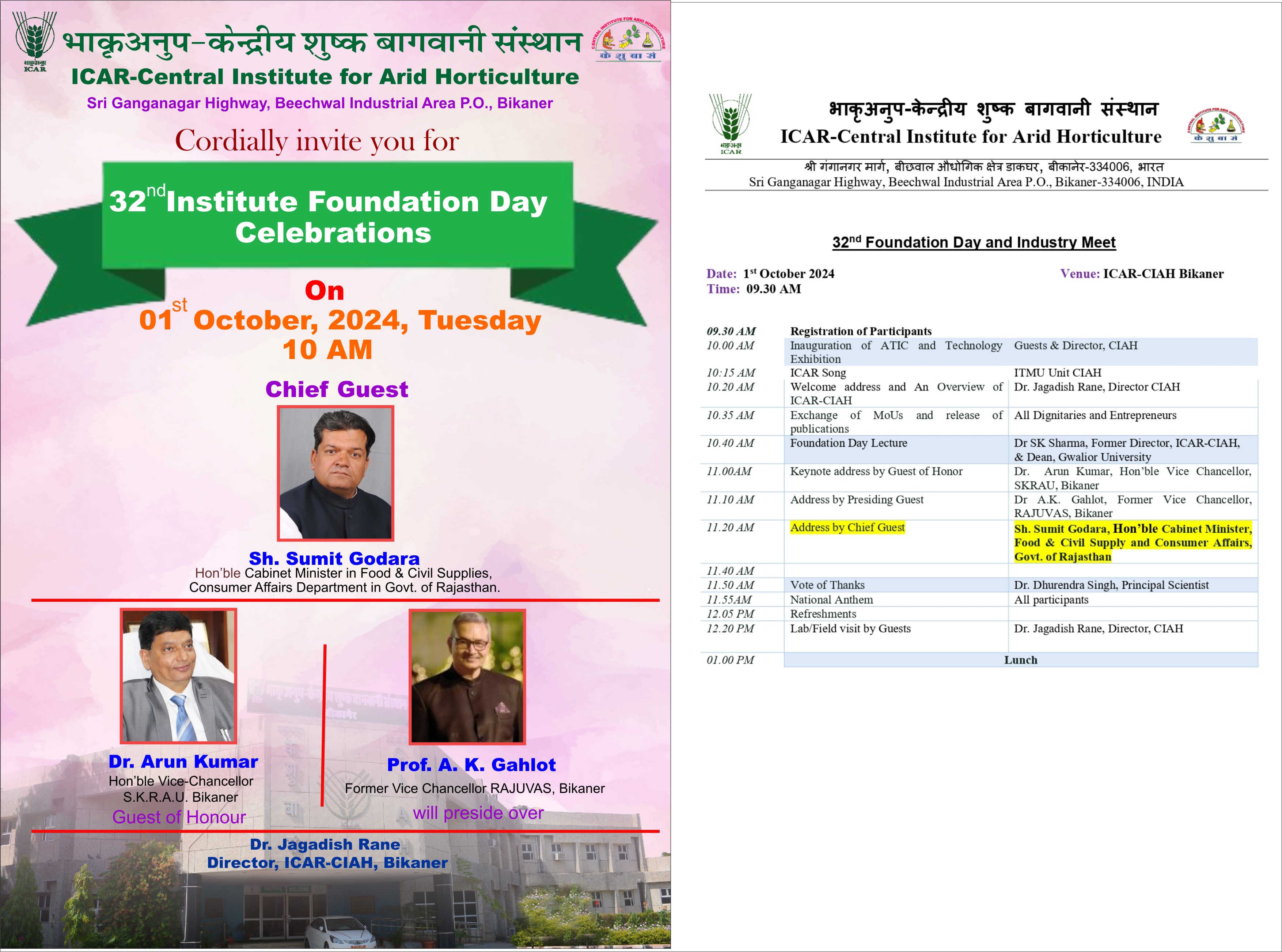 35. National Seminar on Arid Horticulture for Enhancing Productivity and Economic Empowerment 27-29 Oct 2018: Date for submission of Abstract has been extended upto 31-July-2018